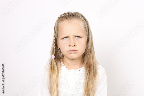 Pretty Little Girl With Blonde Hair Shows Tongue Child With